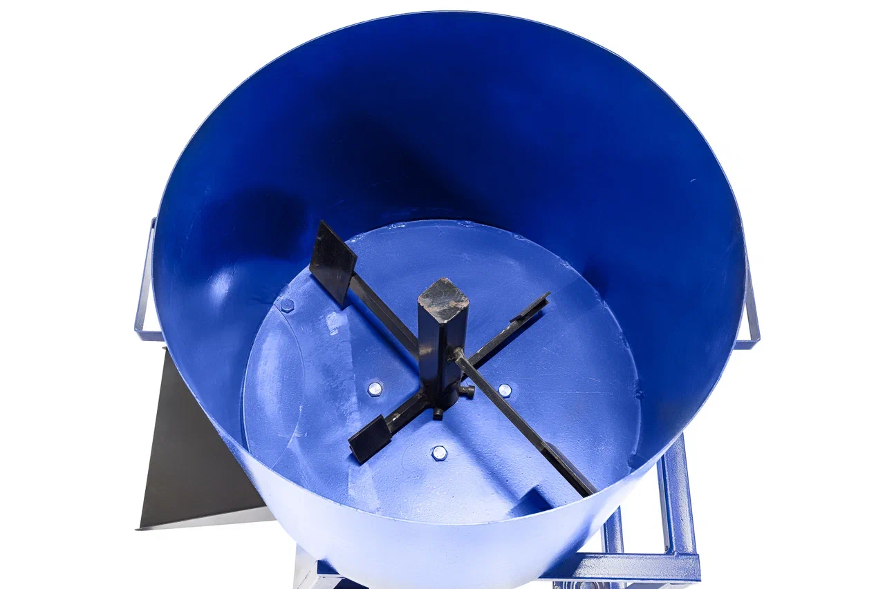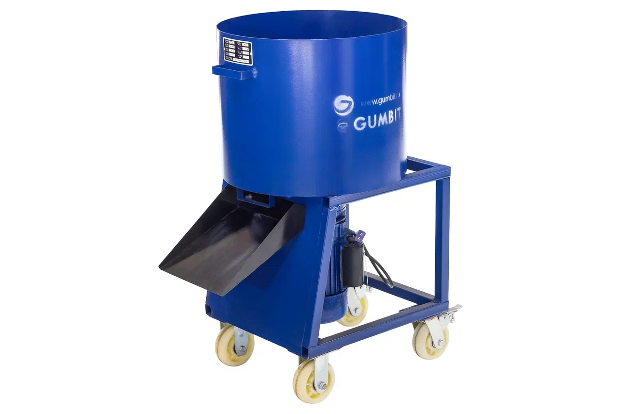 Миксер с электроприводом для производства резиновых покрытий. Перемешивает резиновую крошку, полиуретановое связующее и пигменты в однородную массу за 5 минут. Максимально допустимая разовая загрузка — 90 кг.